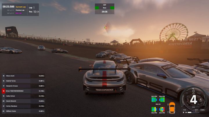 Taki widok podczas wyścigów to normalka. Ale hej, jaki ładny wschód słońca!Assetto Corsa Evo, 505 Games, 2025.