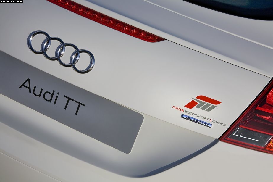 To sportowe coupe, podobnie jak i wersja roadster są w Audi od lat symbolem fascynującej stylistyki i dynamicznych jednostek napędowych. Wersję przygotowaną z okazji współpracy Microsof i Audi przy grze Forza Motorsport 3 będzie można odróżnić od samochodów seryjnych po zewnętrznych oznaczeniach umieszczonych po obu stronach pojazdu przed tylnymi kołami. Na pokrywie bagażnika również umieszczono dyskretne logo tej edycji. Klienci, którzy zdecydują się na zakup Audi TT w limitowanej wersji znajdą poza tym w bagażniku konsolę do gier Xbox 360 Elite wyposażoną w 120 GB dysk twardy wraz z grą Forza Motorsport 3.