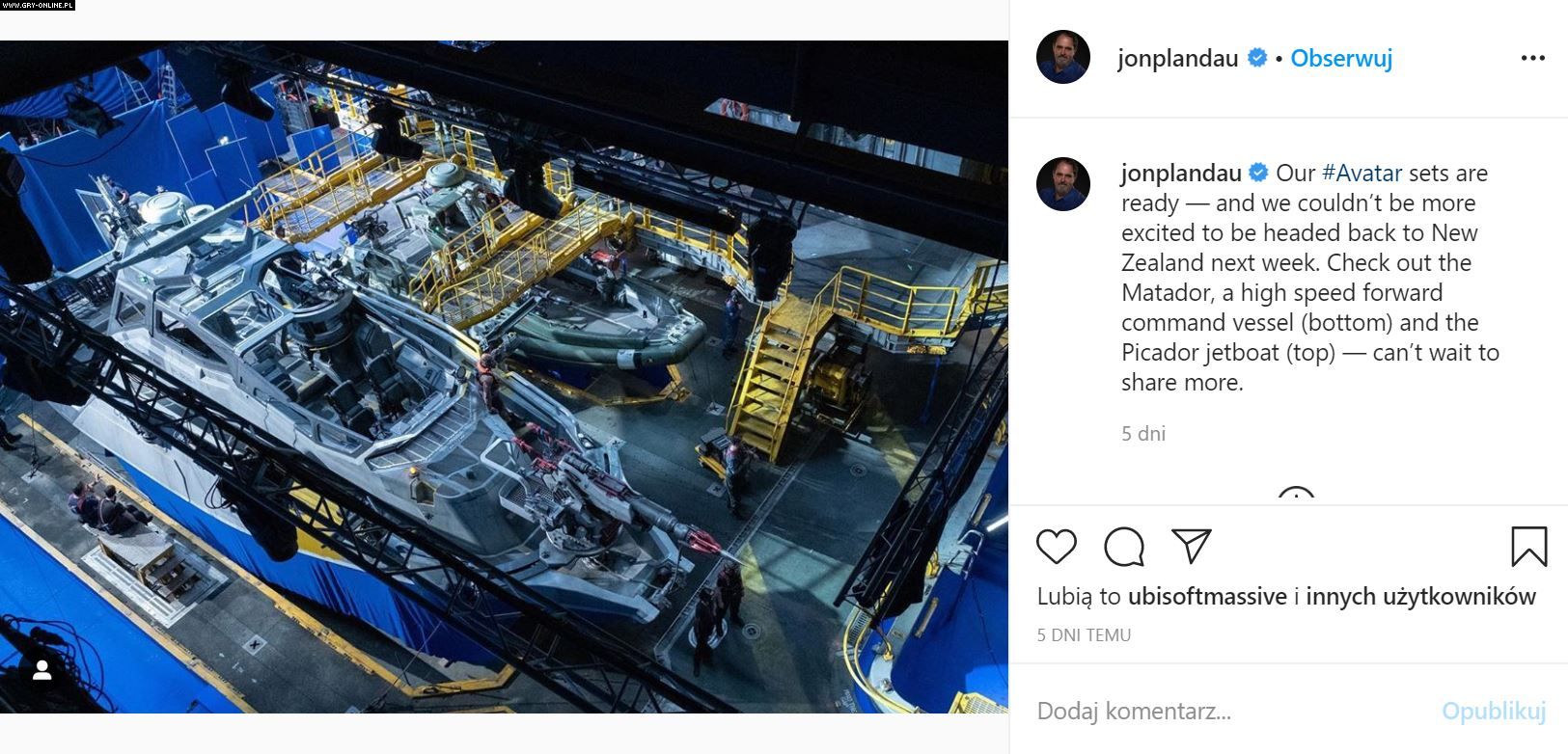 Jon Landau, czyli producent filmowy odpowiedzialny za Avatara 2, w udzielonym wywiadzie podzielił się drobnymi szczegółami na temat fabuły kolejnej odsłony hitu Jamesa Camerona. Natomiast kilka dni temu na swoim Instagramie udostępnił zdjęcie z planu filmowego.