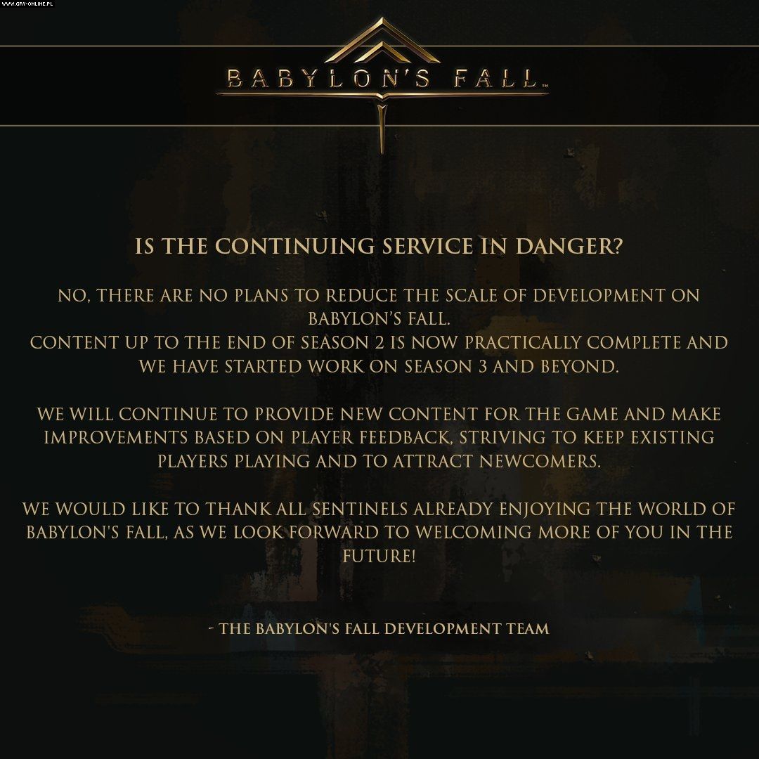 Baza graczy Babylon's Fall w zasadzie nie istnieje, lecz studio PlatinumGames obiecuje zmiany. Ponadto deweloper niemal ukończył prace nad zawartością drugiego sezonu rozgrywek sieciowych. Czy to wystarczy, aby uratować grę?