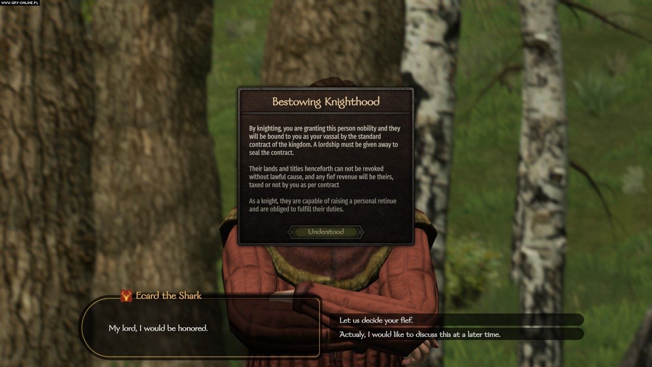 Jakie konkretnie? Zwiększa populację wsi, zamków i miast, rozbudowuje przyznawane postaciom (w tym protagoniście) rangi do poziomu tytułów lennych, poprawia i różnicuje projekty osad czy zwiększa możliwości zarządzania nimi. Ponadto modyfikacja wprowadza zmiany w prawie dziedziczenia, dodaje czteroosobowe rady dla lordów (kanclerz, zarządca marszałek, mistrz szpiegów) oraz obowiązek pasowania każdego z naszych towarzyszy na rycerza, zanim będzie mógł wejść w poczet growej szlachty.