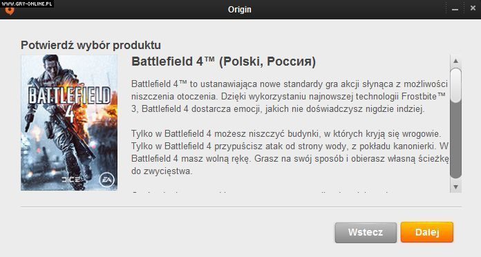 Potwierdza to chociażby powyższy screen, pokazujący ekran aktywacji Battlefielda 4 w usłudze Origin. Jak widać na zdjęciu, egzemplarze dystrybuowane w naszym kraju mają do wyboru jedynie polski i rosyjski język. Najbardziej dociekliwi gracze wykryli, że w plikach gry na PC brakuje tych odpowiedzialnych za angielską wersję. Można się więc domyślać, że podobnie jest w przypadku edycji konsolowych, choć nie możemy tego z całą pewnością potwierdzić. Jeśli posiadacie już Battlefielda 4 na PlayStation 3 lub Xboksa 360, w komentarzach podzielcie się informacją na temat dostępnych wersji językowych.