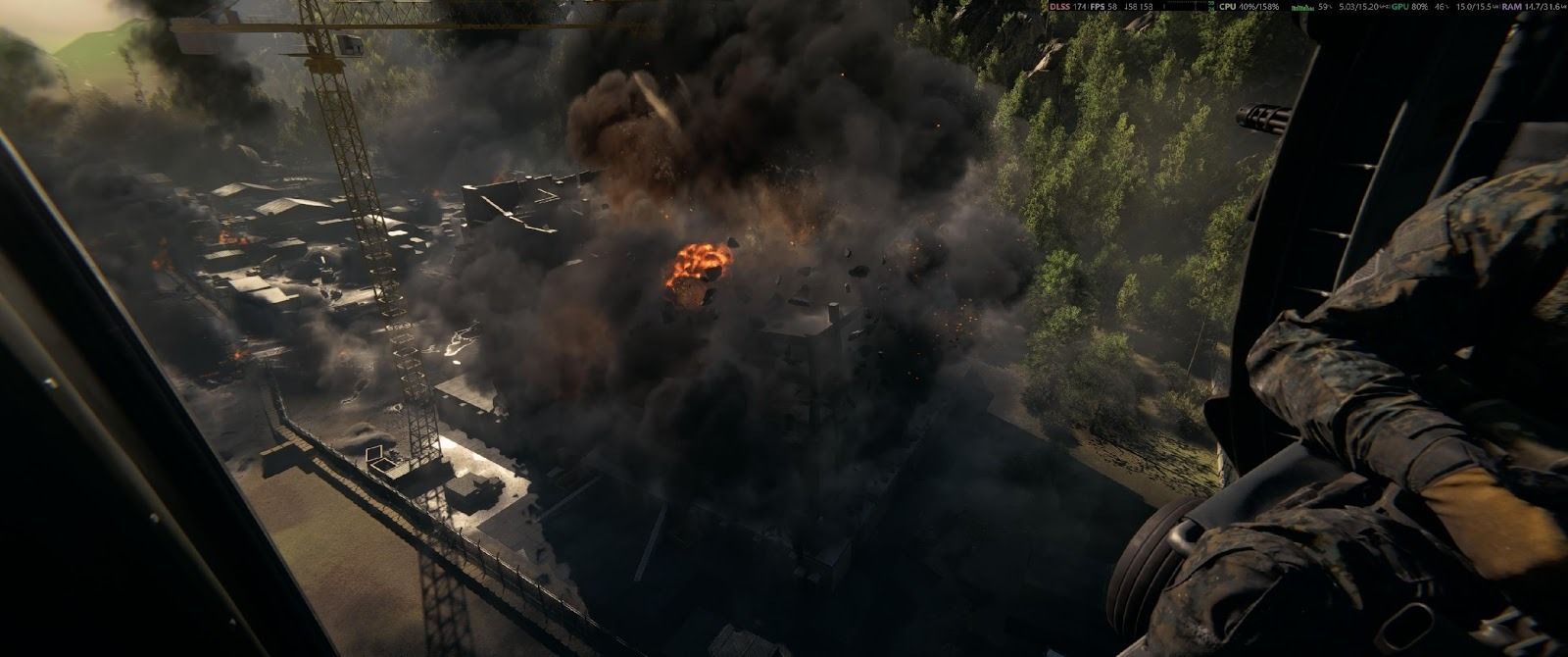 Chyba największe brawa należą się jednak ekipie EA DICE za optymalizację. Battlefield 6 działa naprawdę dobrze, jak na skalę, którą sobą prezentuje. Na moim pececie, na najwyższych ustawieniach graficznych (oznaczonych, jako „zabójcze”), utrzymywał średnio ponad 100 klatek na sekundę ze spadkami do 80 fpsów w natywnej rozdzielczości 3440 na 1440 z wyłączonym upscalingiem. To bardzo ładny wynik i pokazuje, że nawet na najwyższych detalach da się grać spokojnie w module wieloosobowym. Po włączeniu DLSS w trybie jakości średni rezultat wzrasta do około 120-130 klatek na sekundę i jest to naprawdę komfortowy sposób na granie, nawet w trybach wieloosobowych.