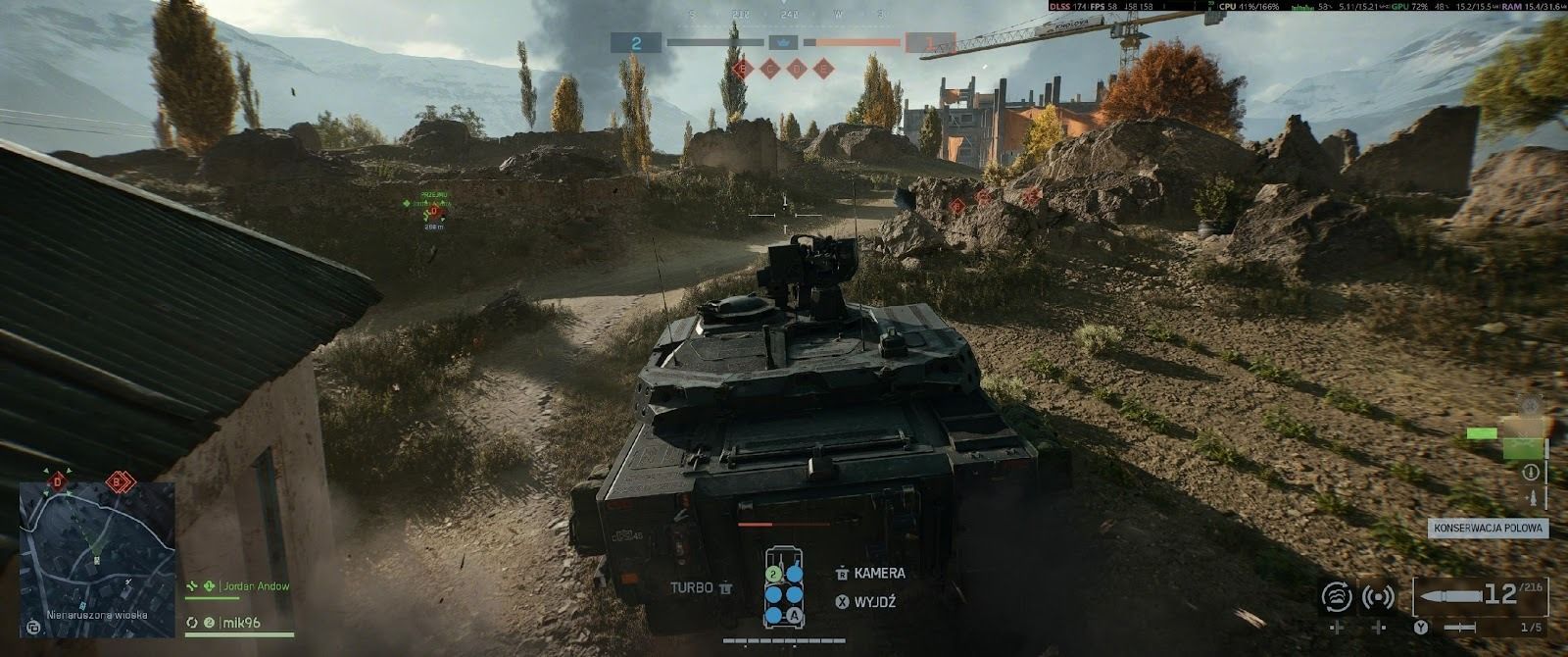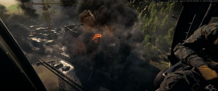 W trakcie rozgrywki często ma się wrażenie, że mapa dosłownie zawali się, zapadnie pod ziemię. Wszystko tu co chwilę wybucha, żadna osłona nie jest niezniszczalna, a jadący czołg może obrócić w pył nasze schronienie. Tak zaawansowana destrukcja otoczenia wymaga naturalnie odpowiednio mocnego procesora. Nie jest tajemnicą, że Ryzen 7 9800 X3D to jeden z najmocniejszych dostępnych obecnie układów na rynku, ale i tak było mi miło podziwiać, że nawet w środku totalnej zawieruchy, z trzema czołgami i rozlatującymi się chatkami, dawał sobie radę i spokojnie pracował bez większych problemów. Użycie procesora wahało się od 50 do 60 procent podczas starć w trybach dla dużej liczby graczy (np. w podboju) i spadało zauważalnie w trybie kampanii czy deathmatchu (do około 30%).