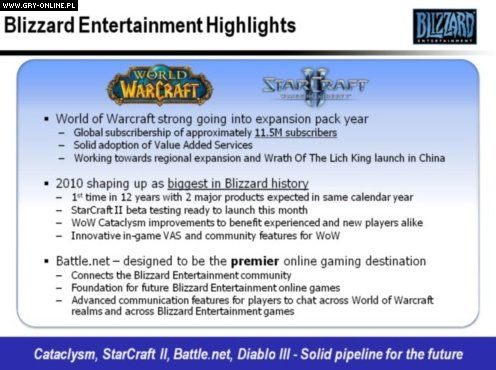 Mike Morhaime jednocześnie potwierdził, że Blizzard planuje wydać StarCrafta II mniej więcej w połowie tego roku (o czym mówiono już od jakiegoś czasu). Podczas rozmowy z inwestorami Bobby Kotick, prezes Activision, dodatkowo ujawnił, że gra będzie dostępna także w postaci cyfrowej w serwisie Battle.net, podobnie jak wiele innych produkcji Blizzarda.