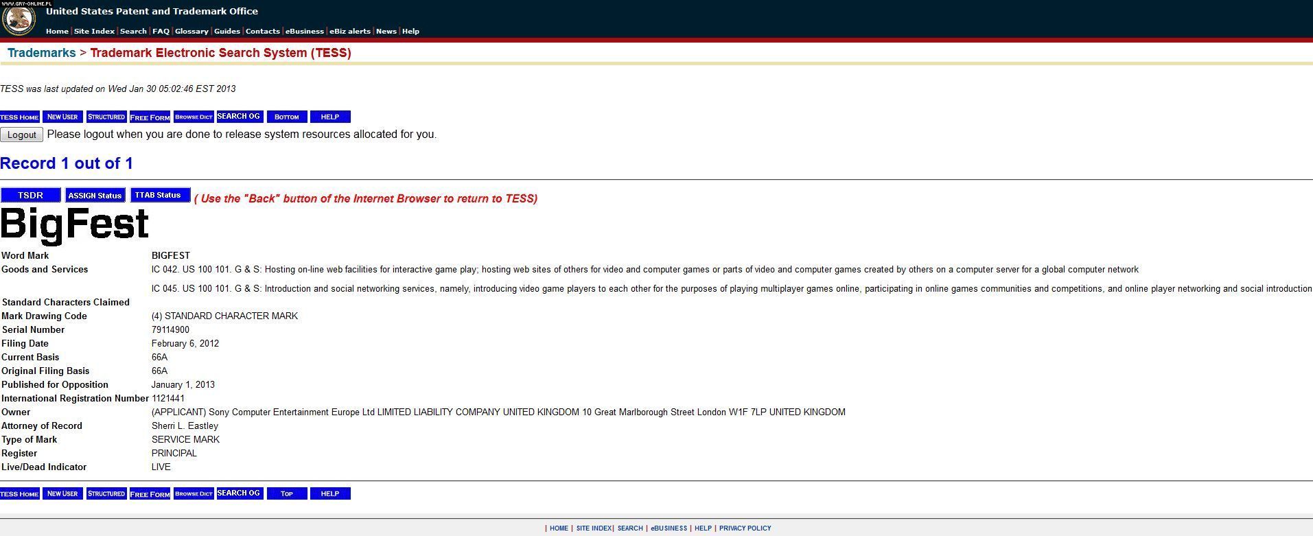 Opis znaku towarowego BigFest na stronie internetowej Amerykańskiego Urzędu Patentowego wzbudza skojarzenia ze wspomnianym PlayStation Home. Mowa m.in. o „sieciach społecznościowych, pozwalających graczom na zapoznawanie się ze sobą w celach wspólnych rozgrywek multiplayer w grach sieciowych”, czy też o „braniu udziału w sieciowych konkursach i społecznościach gier”. Takie możliwości oferuje w tej chwili właśnie PlayStation Home.