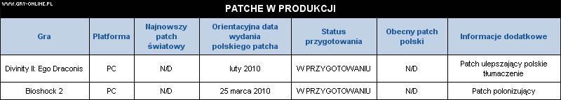 Ponadto, na stronie Cenegi (wydawcy Bioshock 2 w naszym kraju) pojawiła się informacja, że obecnie trwają prace nad łatką polonizującą. Jej wypuszczenie zaplanowano na 25 marca 2010. Aktualizacja przewidziana jest jedynie dla edycji komputerowej.