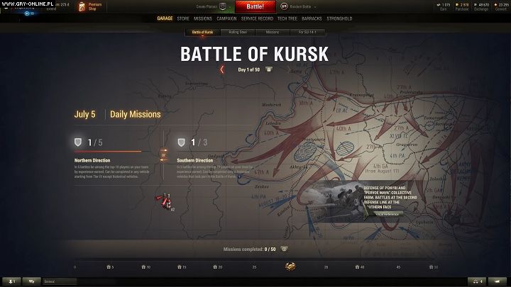 Każdego dnia gracze będą decydować, którą z dwóch dróg chcą obrać – kierunek Południowy, gdzie będą kontrolować pojazdy, które brały udział w bitwie pod Kurskiem (m.in. Tiger I, Ferdinand, T-34 czy SU-85) lub kierunek Północny, przeznaczony dla osób nieposiadających wymaganych maszyn w garażu. Misje będą aktywowane automatycznie po wejściu do bitwy losowej, a ich zaliczenia można dokonywać symultanicznie, co na pewno ułatwi wykonanie dziennego wyzwania.