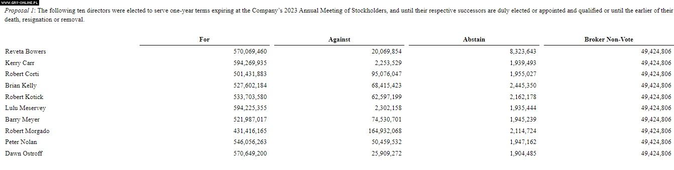 Activision Blizzard podało, że chce „ostrożnie rozważyć” tę propozycję, by „w przyszłości poprawić jakość ujawnianych informacji”. Jednak wiele osób niespecjalnie wierzy w szczerość intencji spółki. Zwłaszcza w kontekście, jak widać, przeważającego poparcia inwestorów dla zarządu, który przecież doradzał im odrzucenie całego pomysłu (via Axios).