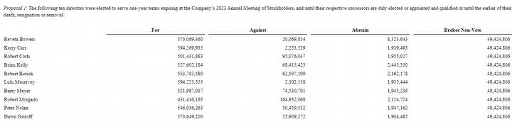 Udziałowcy przegłosowali też dwie niewiążące propozycje. Pierwsza dotyczy przyznania dyrektorom pakietów wynagrodzeń (większością 88% głosów). Druga wiązała się z utworzeniem raportu na temat działań spółki, podjętych w celu walki z molestowaniem i dyskryminacją pracowników. Był to pomysł Thomasa DiNapoli, kontrolera stanu Nowy Jork, którego przedstawiciele jakiś czas temu wytoczyli firmie proces w związku z rzekomym ukrywaniem przez zarząd informacji na temat afer.