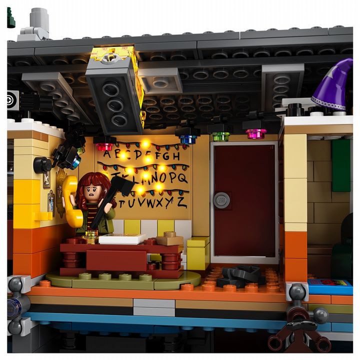 Składa się on w sumie z 2287 elementów i przedstawia równocześnie dwie wersje oddanego ze szczegółami domu rodziny Byers, tą z naszego świata oraz z innego wymiaru, a więc tzw. Drugiej Strony (ang Upside Down). Obie łączą się ze sobą w interesujący i widowiskowy sposób, jak lustrzane odbicia. Fani otrzymają także osiem figurek głównych bohaterów, samochód szeryfa Hoppera oraz specjalną podstawkę z logo serii. Po złożeniu całość ma wysokość wynoszącą 32 cm oraz szerokość 44 cm.