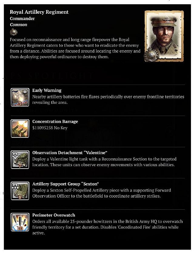 Na screenach możemy zobaczyć między innymi nowe jednostki, które zostaną najpewniej wprowadzone w niezapowiedzianym jeszcze rozszerzeniu. Wśród nich znalazły się czołgi Churchill Avre i Crocodile, wyrzutnia rakiet Calliope, lądowa artyleria Land Mattress oraz opancerzony samochód AEC Mk. III, nie zabrakło również tradycyjnej piechoty (są także oddziały uzbrojone w moździerze), a także dowódców wyposażonych określone umiejętności.