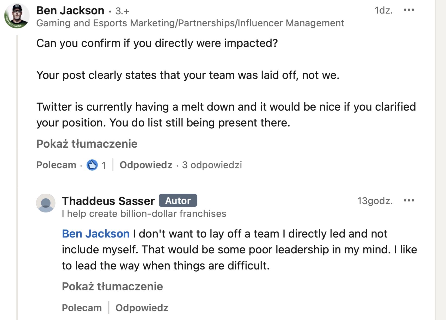 Nie chciałbym zwalniać zespołu, którym bezpośrednio kierowałem, i nie wliczać w niego siebie. W moim przekonaniu byłoby to przejawem słabego przywództwa […].