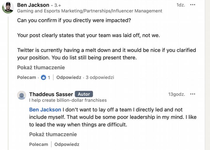 Thaddeus Sasser, jeden z reżyserów Marvel Rivals, potwierdził na swoim profilu LinkedIn, że również stracił pracę w wyniku niedawnych zwolnień przeprowadzonych przez chińską firmę NetEase Games. Jak podkreślił, nie wyobrażał sobie sytuacji, w której jego podwładni tracą stanowiska, a on sam pozostaje dalej w firmie (warto zaznaczyć, że jeszcze do wczoraj zarzucano mu odmowę komentarza w tej sprawie). Odpowiadając na jeden z komentarzy pod swoim postem na wspomnianej platformie, deweloper napisał wprost: