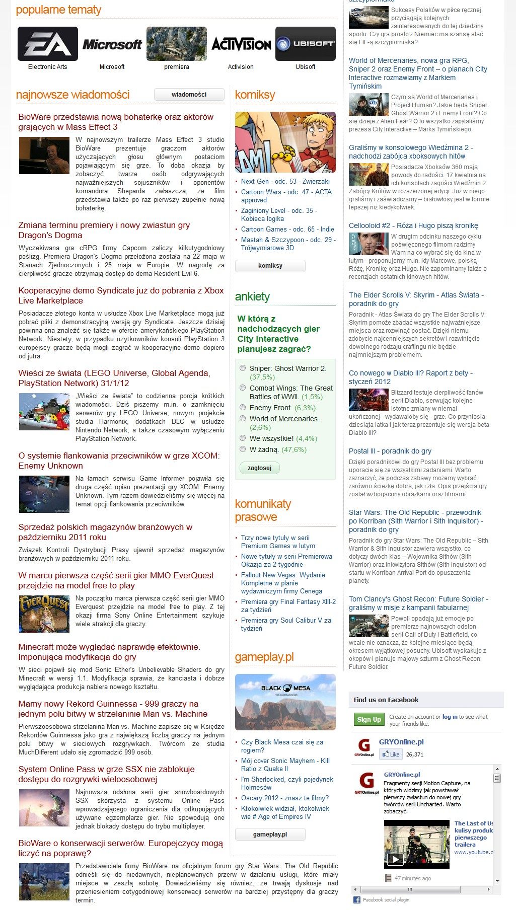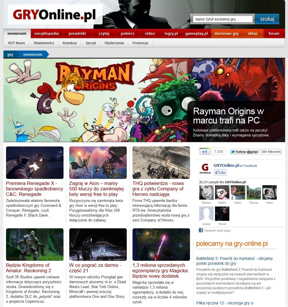 Dodatkowo w prawej kolumnie znajdziecie obiekt społecznościowy serwisu facebook oraz listę najciekawszych materiałów z działu czytaj i ostatnio opublikowanych poradników do gier.