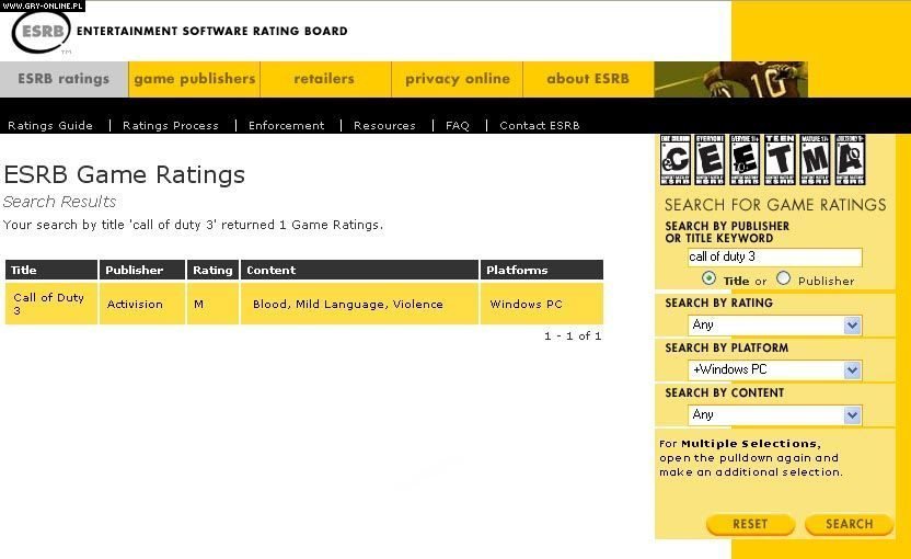 Ciekawscy forumowicze serwisu IGN odkryli, że w katalogu zatwierdzonych przez ESRB gier, znajduje się trzecia odsłona cyklu Call of Duty. Nie byłoby w tym nic specjalnie dziwnego, gdyby nie jeden mały detal... platforma sprzętowa. Z informacji opublikowanych na stronie – co zresztą potwierdza powyższy obrazek (kliknij, żeby go powiększyć) – wynika, że produkt ten doczeka się konwersji na PC.