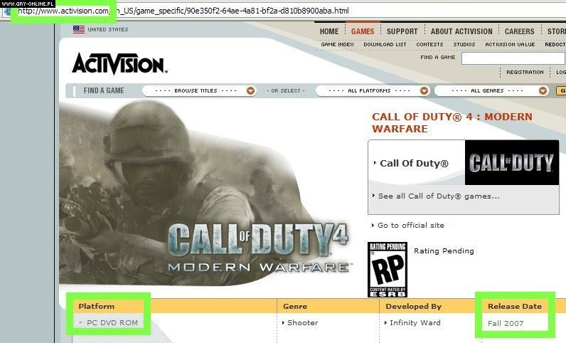 Jako pierwsza o wersji PC poinformowała firma Activision. Stało się to za sprawą oficjalnej strony internetowej. Do obecnego na łamach witryny spisu gier, wydawca dodał Call of Duty 4: Modern Warfare, zaznaczając, że produkt zostanie wydany jesienią tylko na „blaszaki”. Niestety, gdy wieść ta dotarła do fanowskich serwisów, Activision zlikwidował wpis. Na potwierdzenie macie zatem tylko powyższy obrazek, który został zamieszczony na forum Charlie Oscar Delta.
