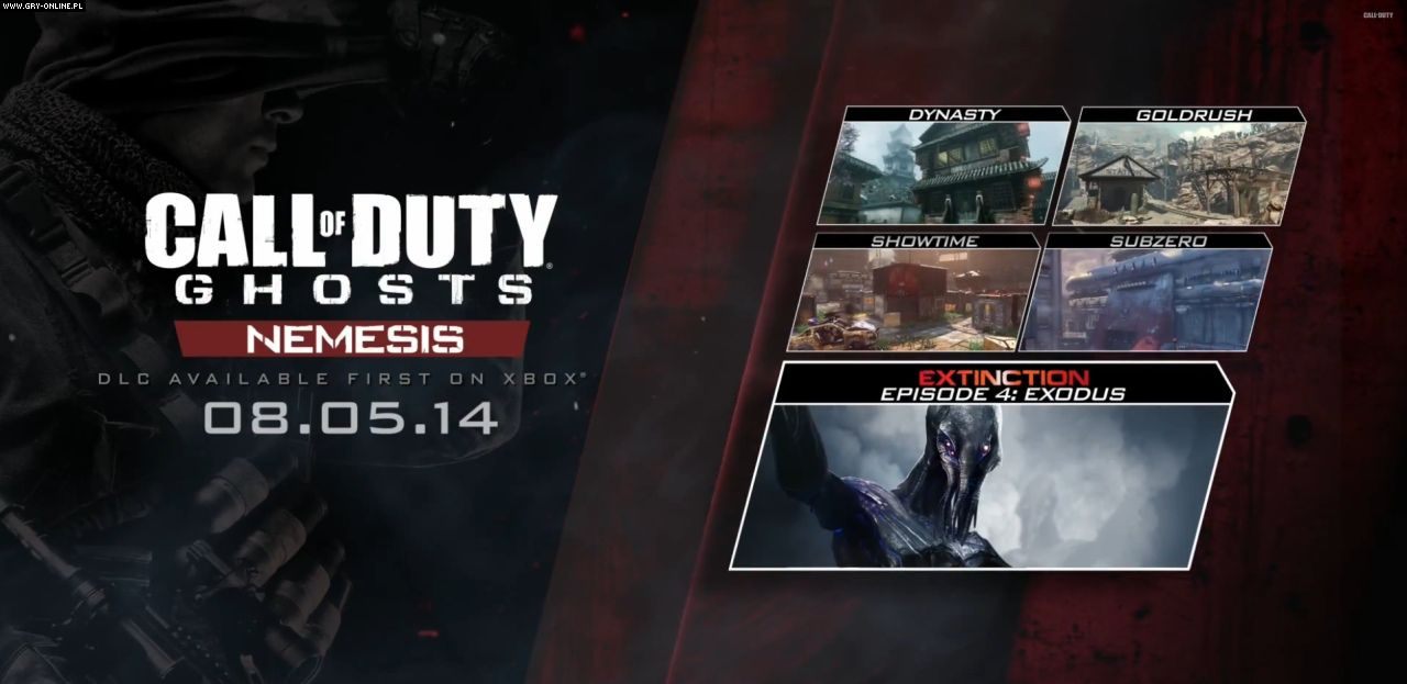 W najbliższy wtorek użytkownicy konsol z rodziny Xbox będą mogli zagrać w Call of Duty: Ghosts – Nemesis, będące ostatnim pakietem DLC do zeszłorocznego FPS-a od Infinity Ward. Dodatek wprowadzi cztery nowe mapy oraz ostatni rozdział kooperacyjnej mini-kampanii Extinction.