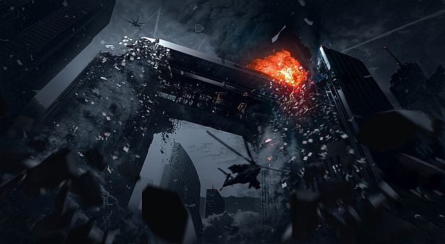 Mamy tutaj do czynienia z wieżowcem na skraju zawalenia, a właściwie jego kilkupiętrowym fragmentem, który odłamał się od podstawy i oparł o sąsiedni drapacz chmur pod kątem 90 stopni. Wraz z upływem czasu i rozwojem rozgrywki czeka nas doświadczanie kolejnych zniszczeń, zwiastujących nieuchronną katastrofę, które będą stale zmieniały układ mapy – odłamany fragment budynku stopniowo opada, wraz z osiadaniem pięter sąsiedniego wieżowca, o który się oparł, spadające windy wybijają dziury w podłogach (czy może raczej ścianach), a okna, w jednej chwili funkcjonujące jako podłoga, nagle stają się kilkusetmetrowymi przepaściami. Według słów Marka Rubina, producenta wykonawczego Infinity Ward, nowy rodzaj poziomów zmieni podejście graczy do rozgrywki wieloosobowej w Call of Duty, uniemożliwiając im ułożenie jednej, uniwersalnej taktyki dla danej mapy i zmuszając do ciągłego dostosowywania się do zmiennej sytuacji.