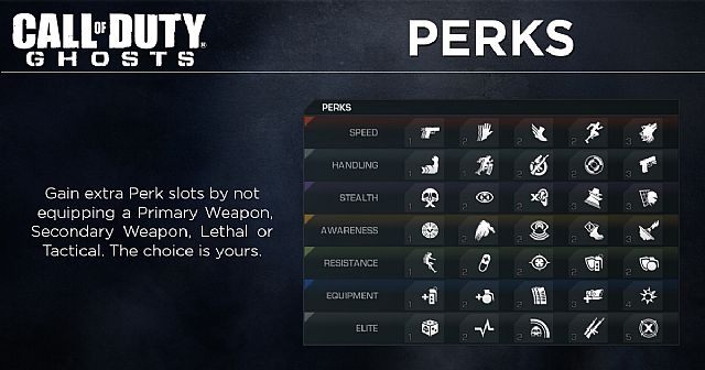 Ujawniono więcej szczegółów na temat systemu perków, który znajdzie zastosowanie w rozgrywce wieloosobowej w Call of Duty: Ghosts. Znamy łączną liczbę zdolności, przedstawiono też sposoby ich zdobwania i nowe przykłady perków.