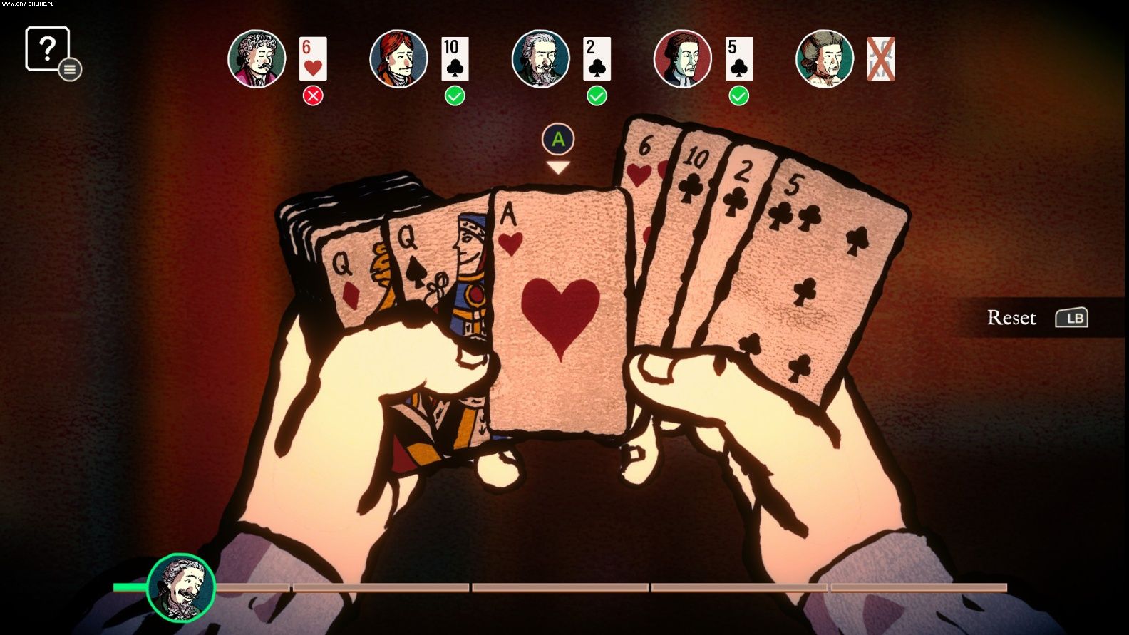 Card Shark można jeszcze pochwalić za oprawę audiowizualną, choć podobnie jak rozgrywka ona również jest bardzo specyficzna. Fakt, wygląda dobrze, ale to nie oznacza, że każdemu będzie się podobać. Widać, że w ręcznie malowane tła oraz charakterystyczne animacje włożono mnóstwo pracy i talentu, tylko taki styl artystyczny akurat mnie osobiście niespecjalnie urzekł. Podobnie jest z barokową muzyką rozbrzmiewającą w tle, której nie jestem wielkim fanem – ale to moje bardzo subiektywne odczucia.