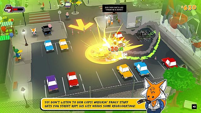 Akcja ukazana zostanie z kamery umieszczonej wysoko nad łbem kota. Gracze będą mogli oddać się radosnej destrukcji otoczenia lub też spróbować dotrzeć do mety unikając zniszczeń i zranienia mieszkańców miasta. Drugi z tych celów utrudni lekka bezwładność sterowania, spowodowana siłą piły oraz stanem upojenia bohatera. Na każdej planszy znajdziemy liczne pomocne przedmioty zapewniające bonusy zwiększające potencjał ofensywny postaci lub studzące piłę i zapobiegające jej przegrzaniu.