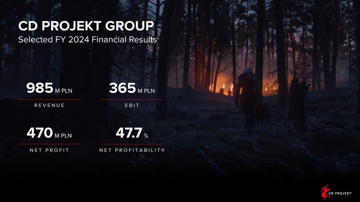 Grupa CD Projekt zaprezentowała wyniki finansowe za 2024 rok, potwierdzając po raz kolejny siłę swoich głównych marek. Mimo braku nowych premier, spółka osiągnęła niemal 1 miliard zł skonsolidowanych przychodów, a zysk netto wyniósł blisko 470 mln złotych.