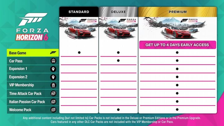 Skoro o DLC mowa, za 519 złotych (119,99 dol. / euro) można kupić edycję Premium. Poza Car Passem pakietem powitalnym to wydanie uwzględnia dostęp z wyprzedzeniem (15 maja zamiast 19 maja), dwa popremierowe duże rozszerzenia, 2 pakiety aut oraz przepustkę VIP. Dochodzi do tego bonus za złożenie zamówienia przed premierą: Ferrari J50 (bez tuningu).