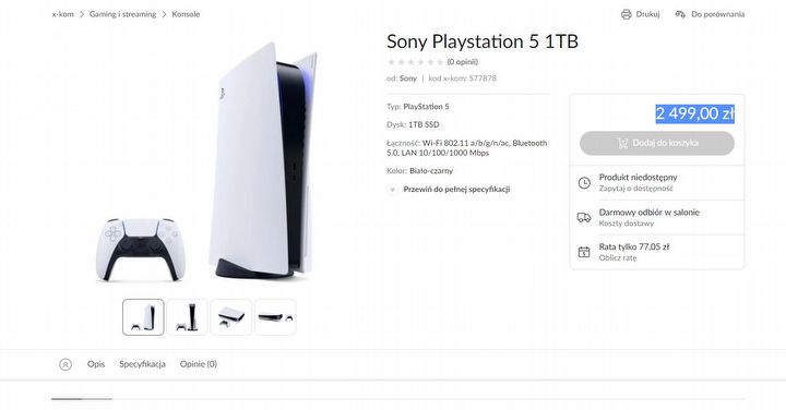 W ofercie polskiego sklepu komputerowego x-kom nieoczekiwanie pojawiło się PlayStation 5 (w wersji z dyskiem o wielkości 1 TB i napędem optycznym). Co najważniejsze, widnieje tam również polska cena konsoli, wynosząca dokładnie 2 499 złotych. Oferta najprawdopodobniej została udostępniona przedwcześnie, dlatego poniżej znajdziecie screeny na wypadek pozbycia się jej z sieci.