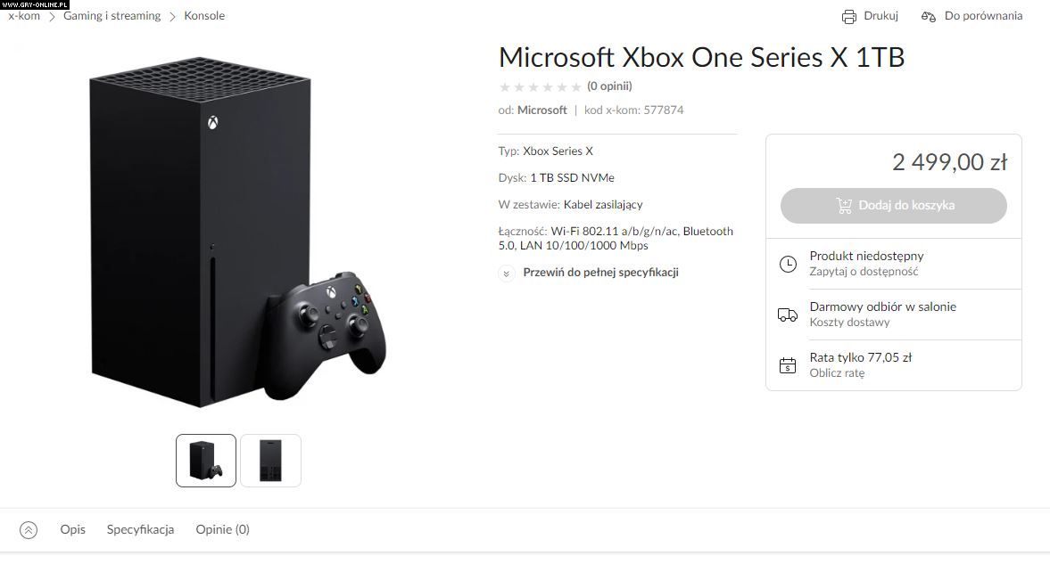 Warto tutaj dodać, że na stronie konsoli Microsoftu, o której wspomniał przedstawiciel, cena „Microsoft Xbox One Series X 1TB” wynosi również 2 499 złotych.