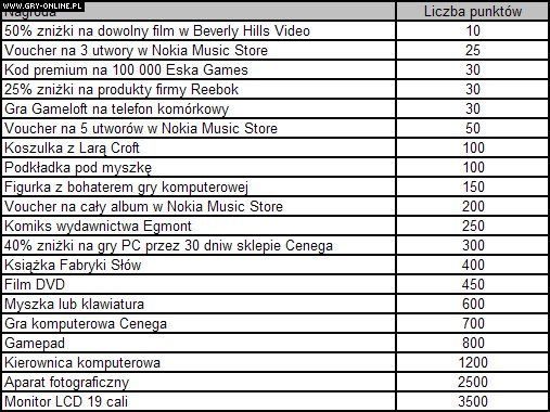 Zebrane punkty można wydać standardowo na legalne utwory z Nokia Music Store, zniżki w różnych sklepach i punktach usługowych (Reebok, wypożyczalnie Beverly Hills Video, iComp, Replikator, Gadzeter), kody do serwisu Eska Games. Do programu lojalnościowego Cenegi Poland dołączyła również firma Gameloft, produkująca gry na telefony komórkowe.