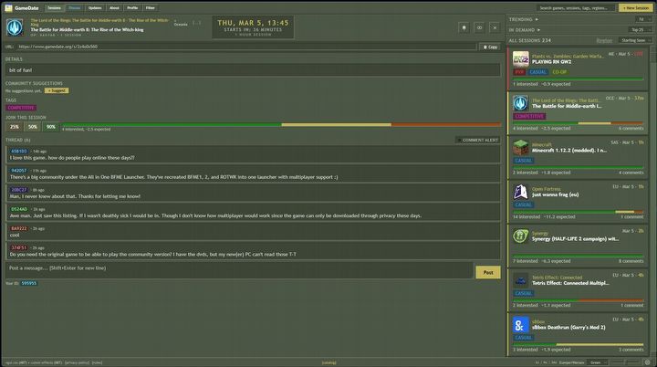 A jak to wszystko sprawdza się w rzeczywistości? Wygląda na to, że całkiem nieźle. Na stronie jest w tym momencie ponad 200 zapowiedzianych sesji, a niektóre cieszą się sporą popularnością. Aktualnie gracze najczęściej wracają do takich tytułów jak Unreal Tournament 2004 czy Call of Duty: World at War. Widać też zaplanowane rozgrywki w Bitwie o Śródziemie 2 albo oryginalnym Star Wars Battlefront 2. Pozostaje więc trzymać kciuki, że projekt będzie się dalej rozwijać.