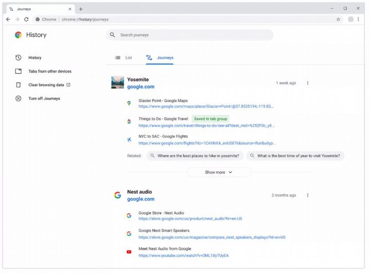 Przeglądarka Chrome 94 oferuje kilka nowości, nie wszystkie jednak są dobrze odbierane przez użytkowników, choćby kontrowersyjne śledzenie aktywności. Google nadal pracuje nad nowymi funkcjami. Kolejne aktualizacje mogą wprowadzić kilka udogodnień, których obecny status określony jest jako eksperymentalny. Mowa o funkcji nazwanej Journeys (podróże), czyli kategoryzacji historii odwiedzonych stron w przeglądarce, i nowym pasku bocznym wyszukiwania.