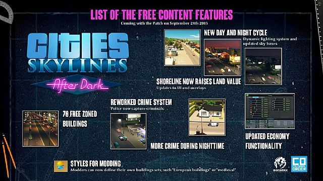 Cities: Skylines niedługo otrzyma pierwszy duży dodatek, ale część nowości z After Dark zostanie udostępniona graczom za darmo. Bezpłatna aktualizacja pojawi się w przyszłym tygodniu.