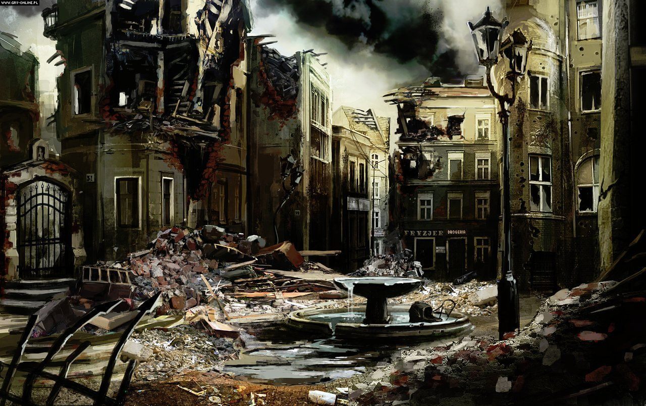 Podobno w grze nie zabraknie nawiązań do zdarzeń historycznych (Wilczy Szaniec, kod Enigma). Polaków ucieszy pewnie informacja o tym, że jeden z poziomów będzie rozgrywał się w zrujnowanej Warszawie, którą pokazano na poniższej grafice koncepcyjnej.