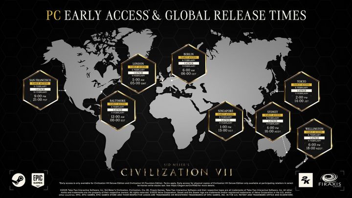 Oficjalna premiera Sid Meier’s Civilization 7 odbędzie się za niecały tydzień, ale już jutro zabawę rozpoczną nabywcy edycji Deluxe oraz Założycieli, które gwarantują wcześniejszy dostęp do gry. Twórcy opublikowali mapy z dokładną godziną debiutu strategii na konsolach i PC.