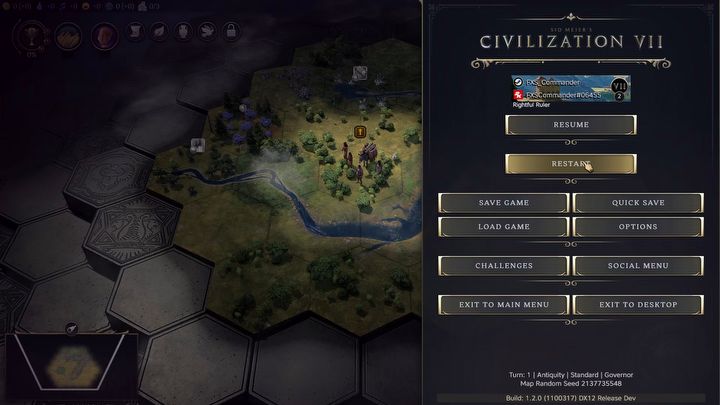 Kolejną ważną zmianą jest przycisk restartu – jego zastosowanie polega na tym, że od teraz da się szybko zresetować grę w pierwszych kilku turach, zachowując przy tym te same ustawienia mapy i lidera. Co ważne, funkcja ta nie będzie dostępna po przejściu do nowej epoki ani, co oczywiste, w trybie multiplayer.