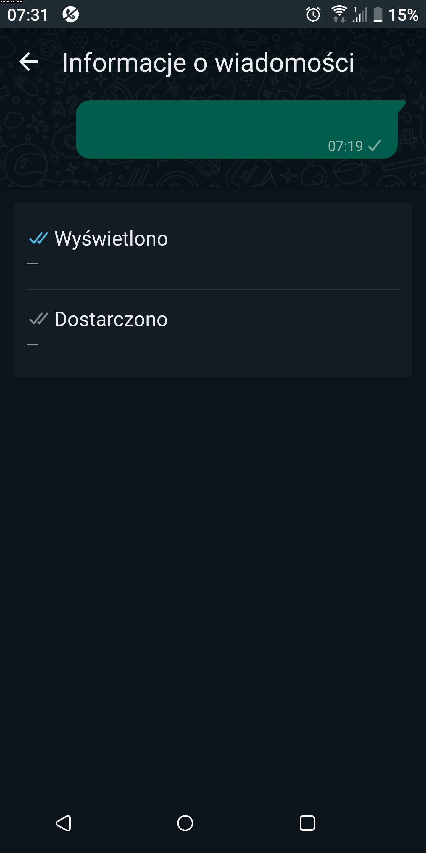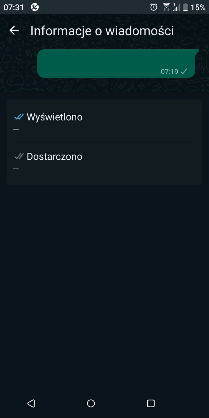WhatsApp pozwala również sprawdzić bardziej szczegółowe informacje o wysyłanych przez nas wiadomościach. Aby się z nimi zapoznać: