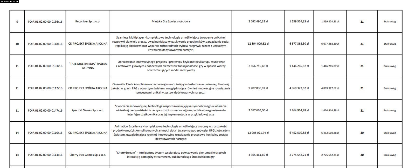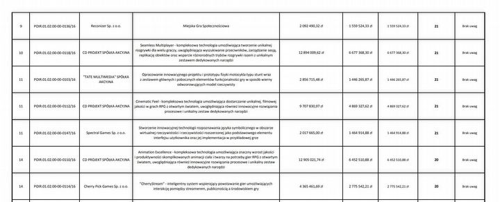 Źródło: https://www.ncbr.gov.pl/fileadmin/gfx/ncbir/userfiles/_public/fundusze_europejskie/inteligentny_rozwoj/gameinn/lista_rankingowa_3_1.2_2016_poir__gameinn.pdf
