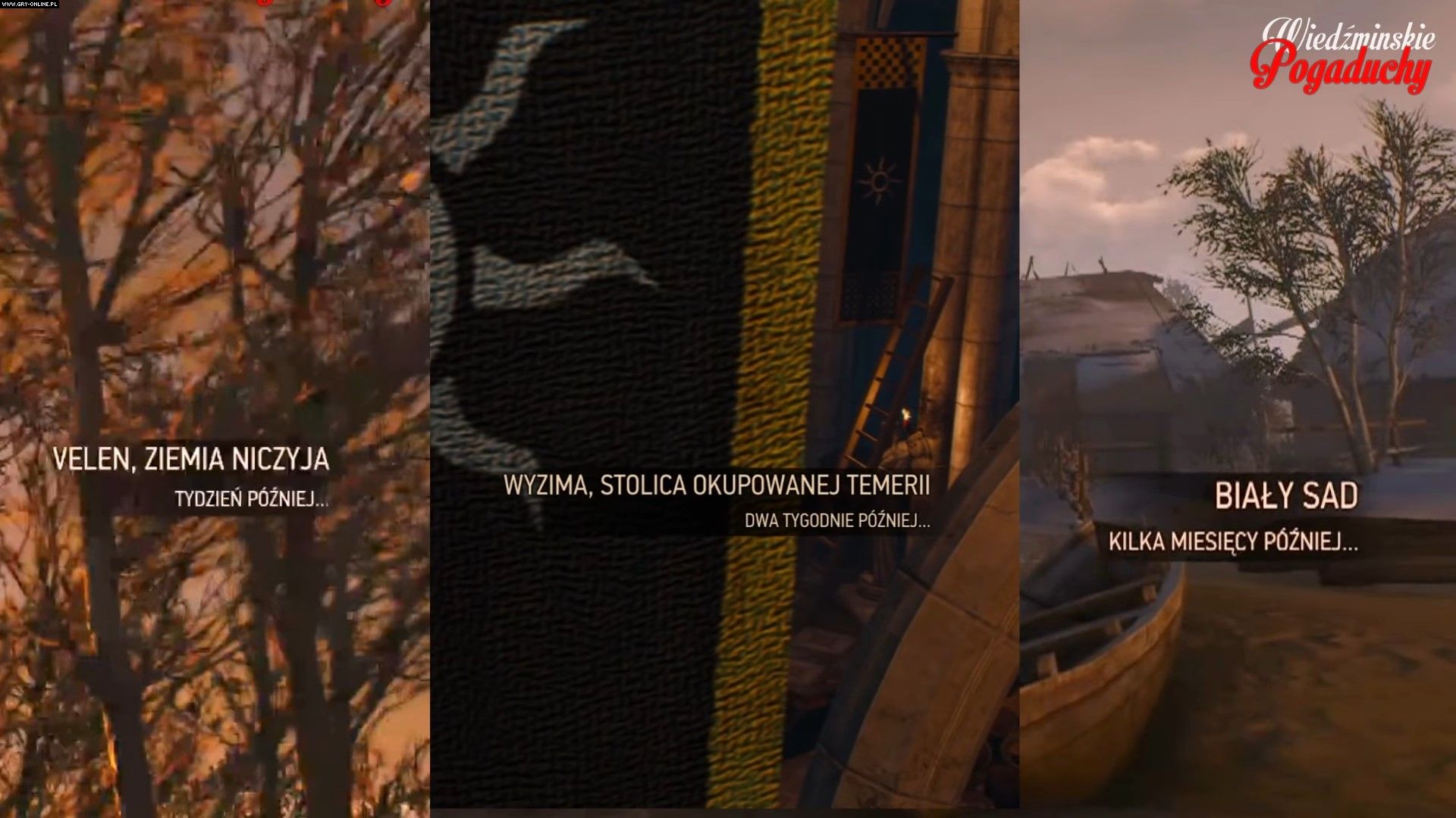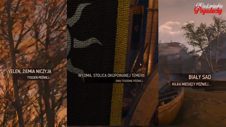 Każdy z trzech przerywników filmowych stanowiących wstęp do epilogów ukazujących konsekwencje naszych działań w Wiedźminie 3 toczy się w innym przedziale czasowym. Niewykluczone zatem, że gra posiada tak naprawdę tylko jedno zwieńczenie historii, a w zależności od naszych wyborów otrzymujemy wgląd w jedno z trzech następujących po sobie wydarzeń. Jest to oczywiście tylko teoria.