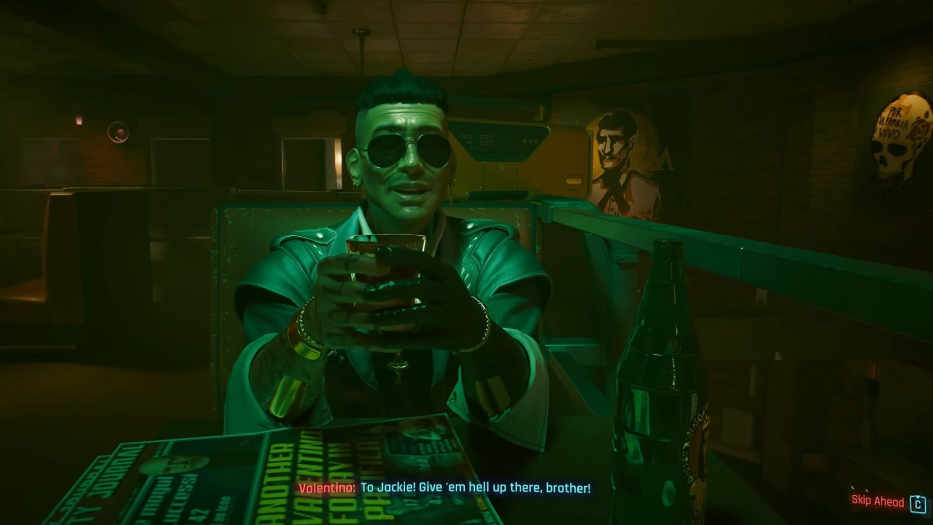 Kolejnym ciekawym punktem na liście jest możliwość odpowiedniego uczczenia pamięci naszego zmarłego druha - Jackiego. Aby doprowadzić do sceny, w której V wznosi toast ku czci przyjaciela z jego dawnym znajomym Ernesto, dla którego jak twierdzi, Jacki był jak brat, należy doprowadzić do jego pogrzebu wśród najbliższych. Wśród zebranych na ceremonii postaci, znajdzie się również przyjaciel Jackiego z dawnych lat.