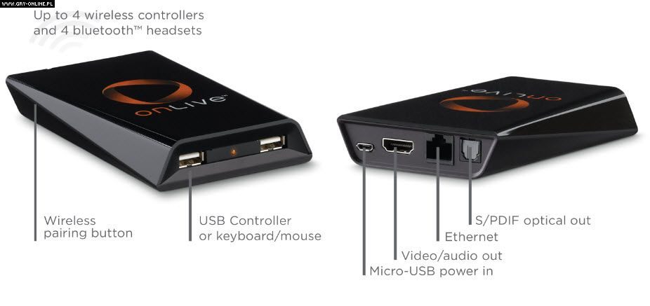 W przypadku chęci uruchomienia OnLive na ekranach płaskich telewizorów, gracz będzie się musiał liczyć z zakupem urządzenia widocznego na powyższym zdjęciu. Posiada ono dwa złącza USB, jedno HDMI, jedno Ethernetowe, a także moduł Bluetooth, który będzie kompatybilny z gamepadami dedykowanymi usłudze.
