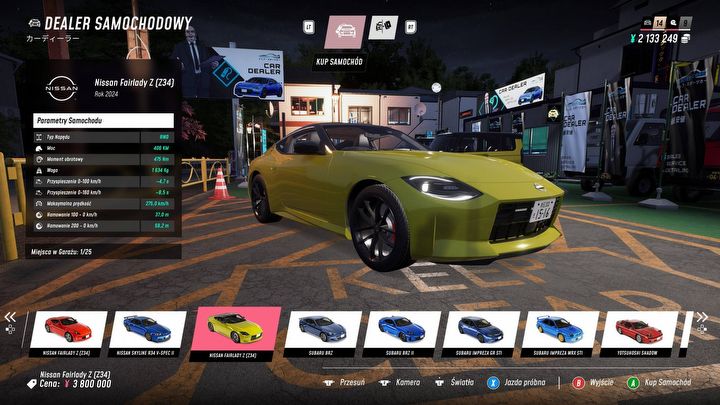 Mój komputer ma na pokładzie Radeona RX 9070 XT, 32 GB RAM-u i Core i7-9700F – i z taką specyfikacją po długim (zbyt długim) eksperymentowaniu z ustawieniami byłem w stanie uzyskać 60 klatek na sekundę (ze sporadycznymi spadkami do 40-50 i mikroprzycięciami, na które już machnąłem ręką), obniżywszy rozdzielczość z 4K do 1440p, a detale do poziomu wysokiego i włączywszy FSR w trybie zrównoważonym. Jest to zatem wydajność porównywalna – może minimalnie lepsza – jak ta, którą uzyskuję w wyjątkowo niedopracowanym Test Drive Unlimited: Solar Crown. Z tym że TDU wygląda jednak trochę ładniej, ma większą mapę (i bardziej otwartą, bez szczelnie ogrodzonych dróg), a do tego nie atakuje gracza ekranami wczytywania na każdym kroku. W JDM trzeba odczekiwać po kilka(naście) sekund nawet, gdy urzędujemy w swoim garażu, przechodząc między panelami tuningu i wyboru samochodu.