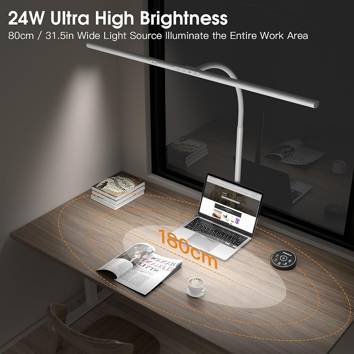 Wyprodukowana przez firmę EYOCEAN lampa biurowa to idealne rozwiązanie dla tych osób, które cenią sobie przestrzeń podczas pracy. Rzeczony gadżet jest wyposażony w zacisk, dzięki czemu – mimo swojej pokaźnej szerokości – nie zajmuje zbyt dużo miejsca. Regulowana szyjka pozwala na swobodne ustawienie lampy w zależności od naszych potrzeb, rozświetlając aż do 180 cm przestrzeni nad blatem.