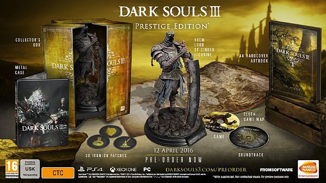Fani dokonań studia From Software muszą jeszcze poczekać wiele miesięcy na premierę Dark Souls III. Najbardziej oddani miłośnicy tego cyklu już teraz mogą jednak zacząć odkładać pieniądze na specjalne wydania trzeciej odsłony serii. W sieci pojawiły się bowiem pierwsze informacje na temat dwóch edycji kolekcjonerskich, jakie szykuje wydawca, czyli firma Bandai Namco. Źródłem tych doniesień jest strona zlokalizowanego w Zjednoczonych Emiratach Arabskich sklepu Geekay Games, na której pojawiły się zdjęcia prezentujące zawartość obu zestawów. Szybko je usunięto, ale mleko już się rozlało.