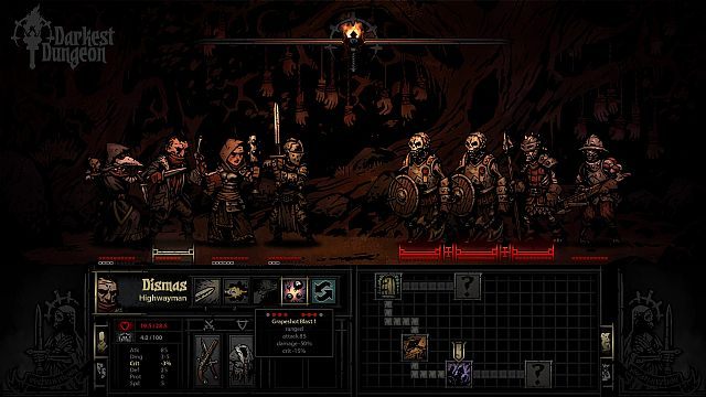 Walka w Darkest Dungeon rozgrywana ma być w systemie turowym. Kluczową rolę odegra właściwe dobieranie formacji, a każde posunięcie trzeba będzie dobrze przemyśleć, gdyż śmierci okażą się ostateczne. Autorzy chcą połączyć oldskulową taktyczną głębię z wieloma bardziej nowoczesnymi rozwiązaniami, takimi jak system kombosów czy mechanizm wyprowadzania kontr. Potwory nie będą jedynym zagrożeniem i równie niebezpieczne okażą się pułapki, niesnaski wewnątrz drużyny oraz przede wszystkim ciemność. Niesione pochodnie mają bowiem stopniowo przygasać, potęgując strach postaci.