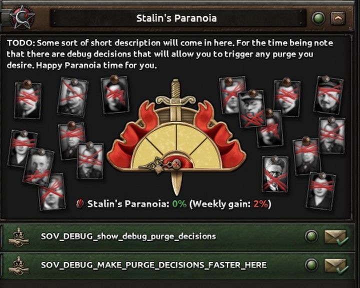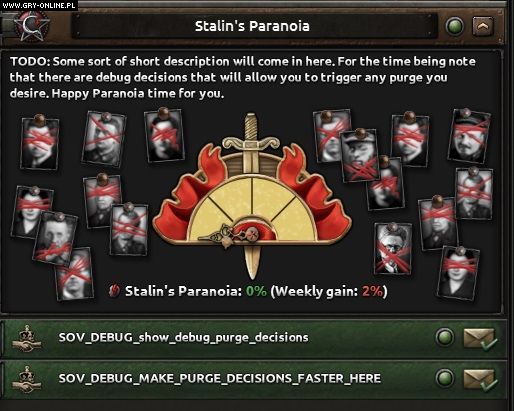 Interesującą nowością będzie system „paranoi” Józefa Stalina, do którego otrzymają dostęp grający Związkiem Radzieckim. Po aktywacji w okolicy 1936 roku zadaniem graczy będzie odpowiednie kontrolowanie stanu psychicznego dyktatora poprzez podejmowanie decyzji. Jeśli poziom paranoi Stalina przekroczy 25 punktów, zacznie dochodzić do losowych czystek w grze. Morderstwa polityczne na większą skalę uruchomimy, jeśli osiągniemy więcej niż 75 punktów. Mechanika paranoi Stalina to nawiązanie do historycznych niepokojów głowy ZSSR, które doprowadziły do serii morderstw obywateli, wojskowych, a nawet członków partii. Zdarzenia te znane są współcześnie jako Wielka Czystka lub Wielki Terror.