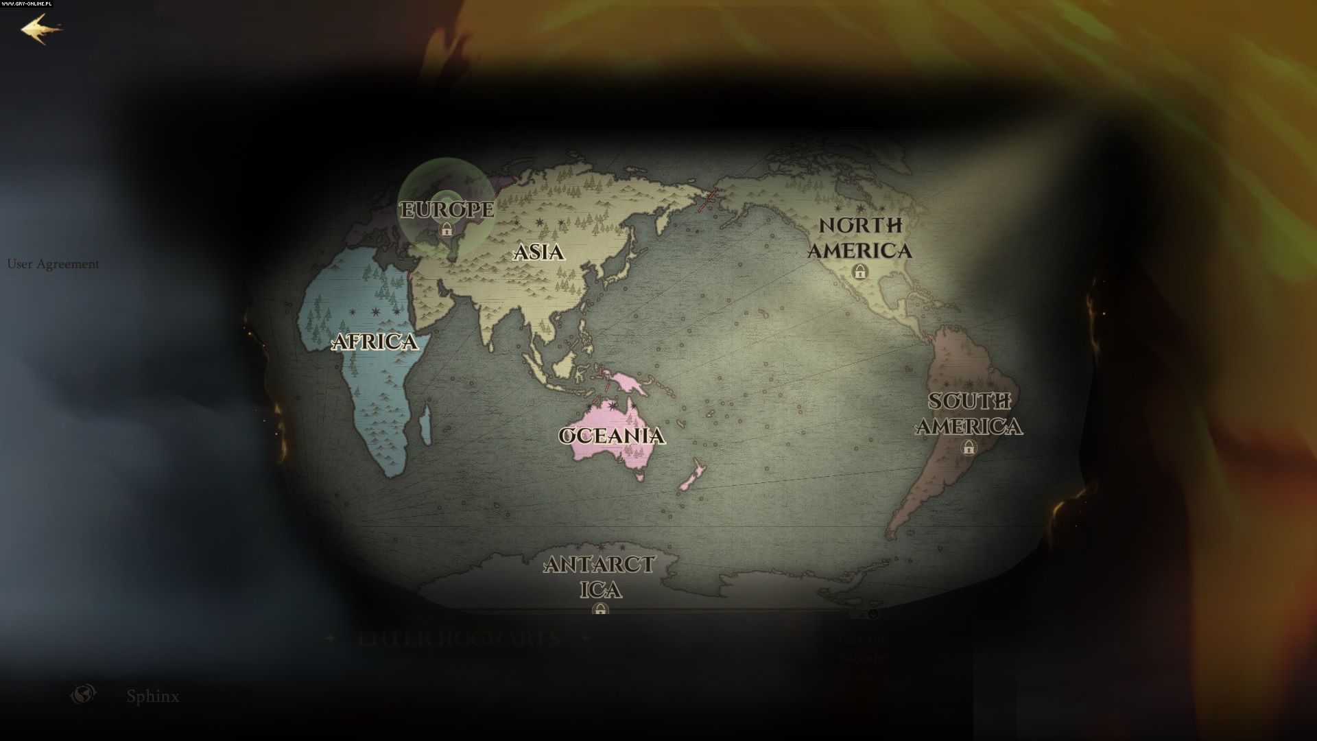 Po pobraniu gry na PC wyświetla się poniższa mapa. W regionach oznaczonych ikoną kłódki nie można się obecnie zalogować. Niewykluczone, że „winne” są przeciążone serwery Harry’ego Pottera: Magic Awakened. W dostaniu się na nie może pomóc oprogramowanie typu VPN.