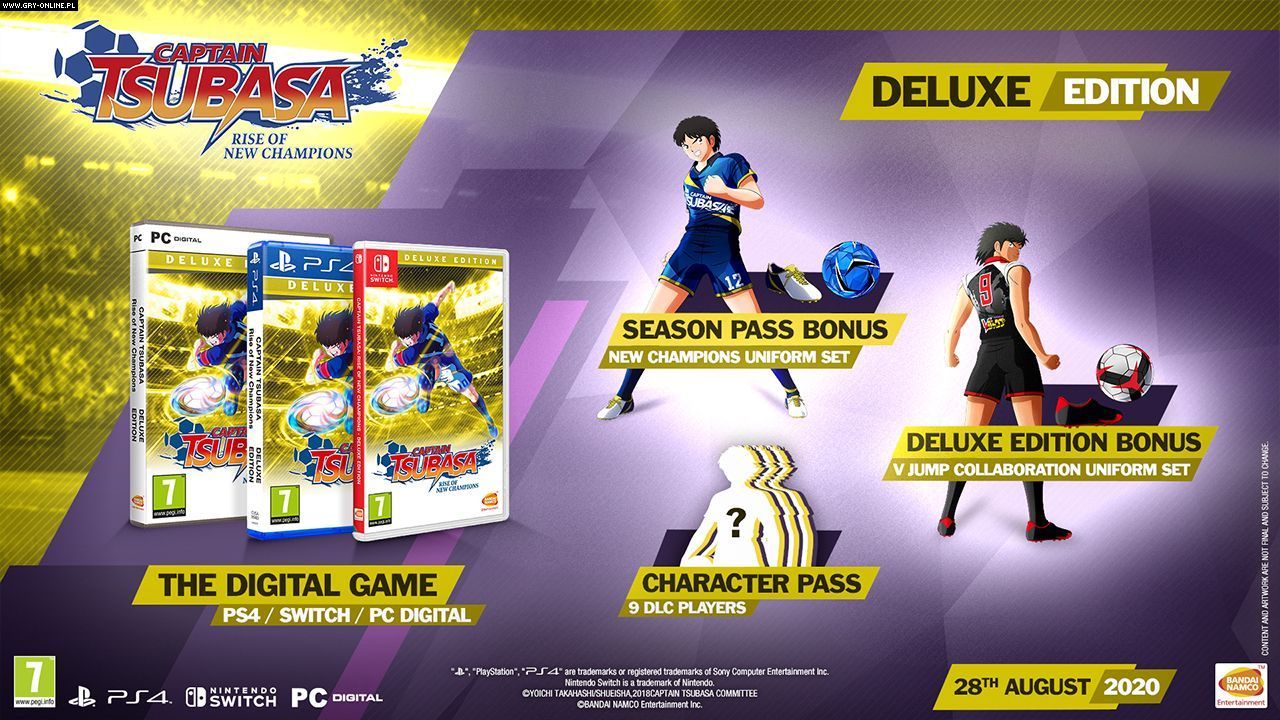 Captain Tsubasa: Rise of New Champions to zręcznościowa piłkarska gra sportowa oparta na popularnej serii anime, która narodziła się na początku lat osiemdziesiątych. Tytuł został zapowiedziany na początku tego roku na konsole PlayStation 4 i Nintendo Switch, a także na komputery PC. Firma Bandai Namco podzieliła się dziś oficjalną datą debiutu produkcji na wszystkich platformach sprzętowych. Została ona wyznaczona na 28 sierpnia. Równocześnie wydawca przedstawił imponującą zawartość edycji specjalnych oraz kolekcjonerskich gry, z których część dostępna będzie jedynie w Europie.