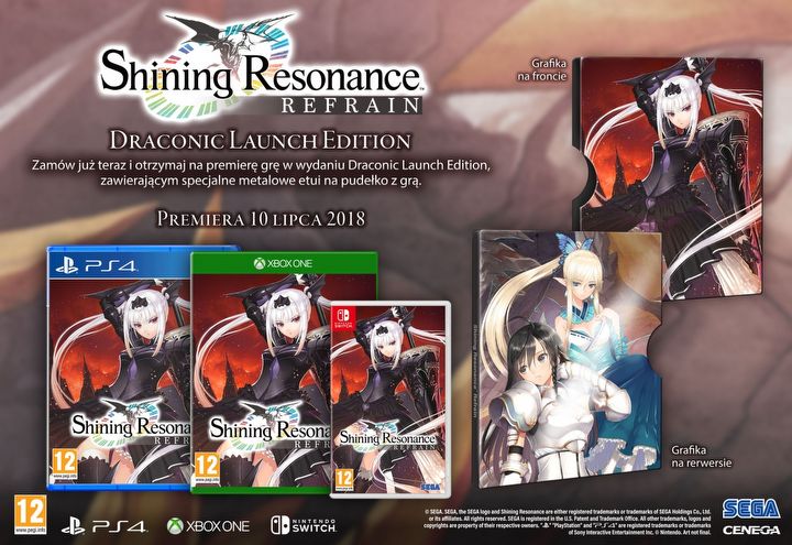 Warto zaznaczyć, że na premierę gra ukaże się w limitowanej edycji Draconic Launch Edition, zawierającej specjalne, metalowe etui na pudełko z grą, ozdobione z dwóch stron artami z Shining Resonance Refrain.